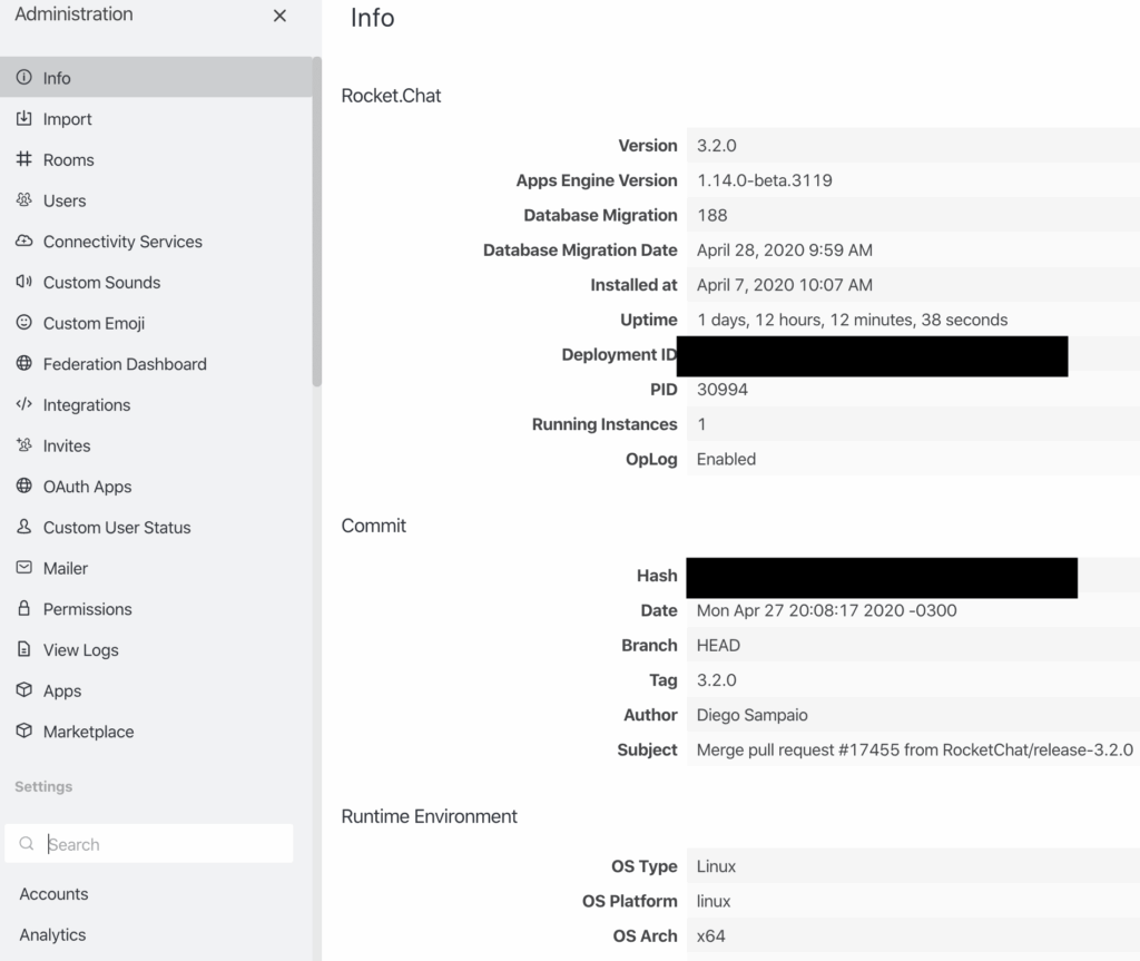 - Of course, if you’re not interested in all the nuts and bolts of setting up platforms, feel free to use the hosted free and paid versions of RocketChat. The Enterprise Edition of RC has lots more features that are not available with the community/open source edition, check it out, it is definitely worth signing up or purchasing. The EE comes in on premise or cloud deployment.