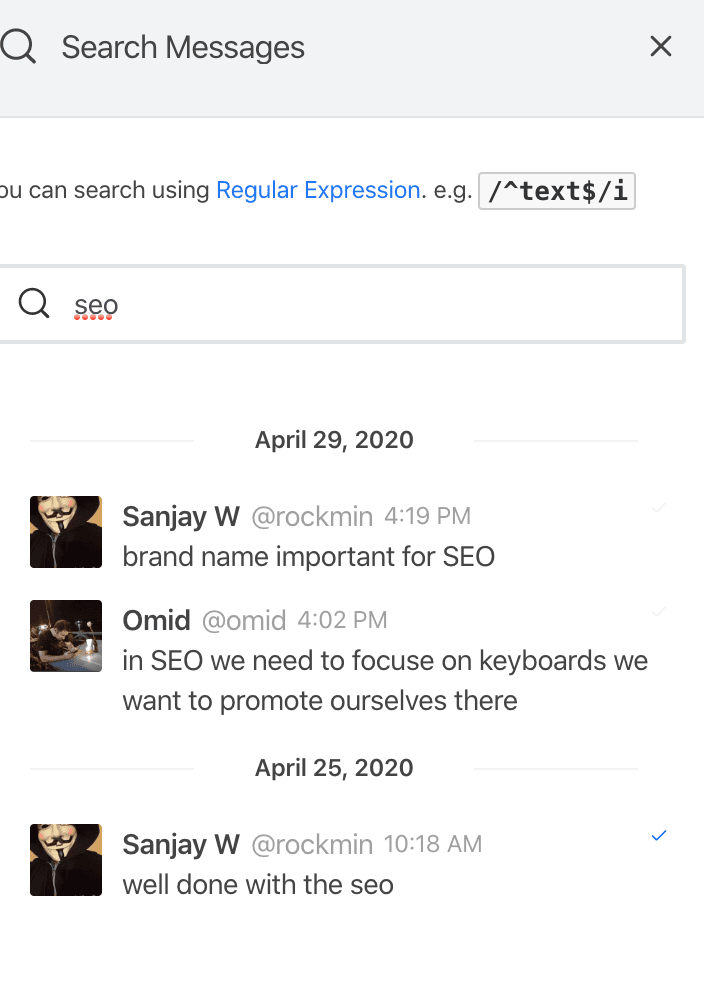 - Another cool component is the ability to narrow down into specific kind of data, like, show me all the images, or all links or snippets. I especially like the mentions (@name), which i think helps you prioritize important messages amongst the weave of messages when you wake up in the morning.